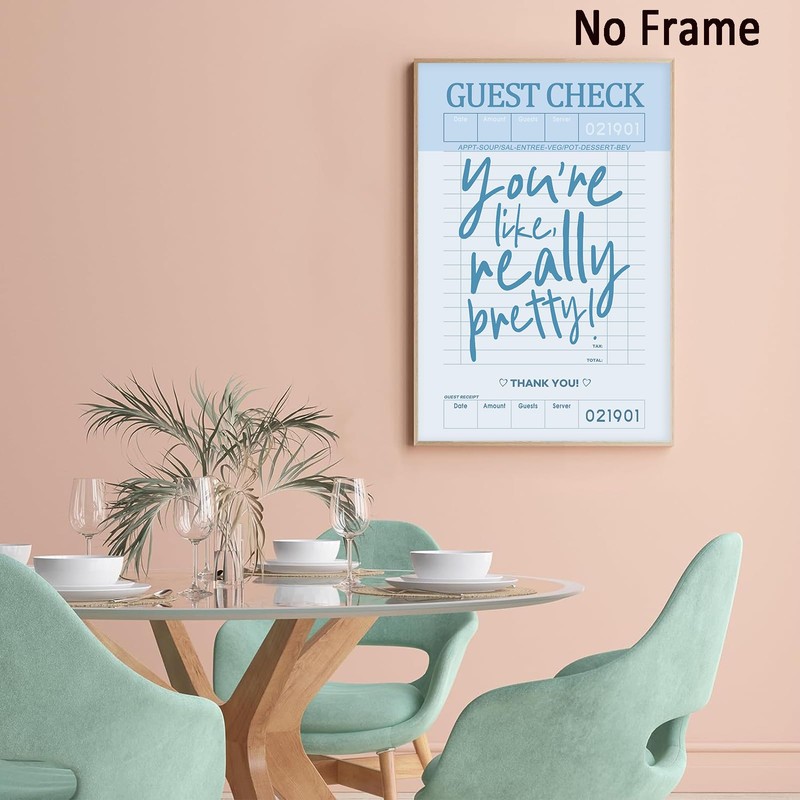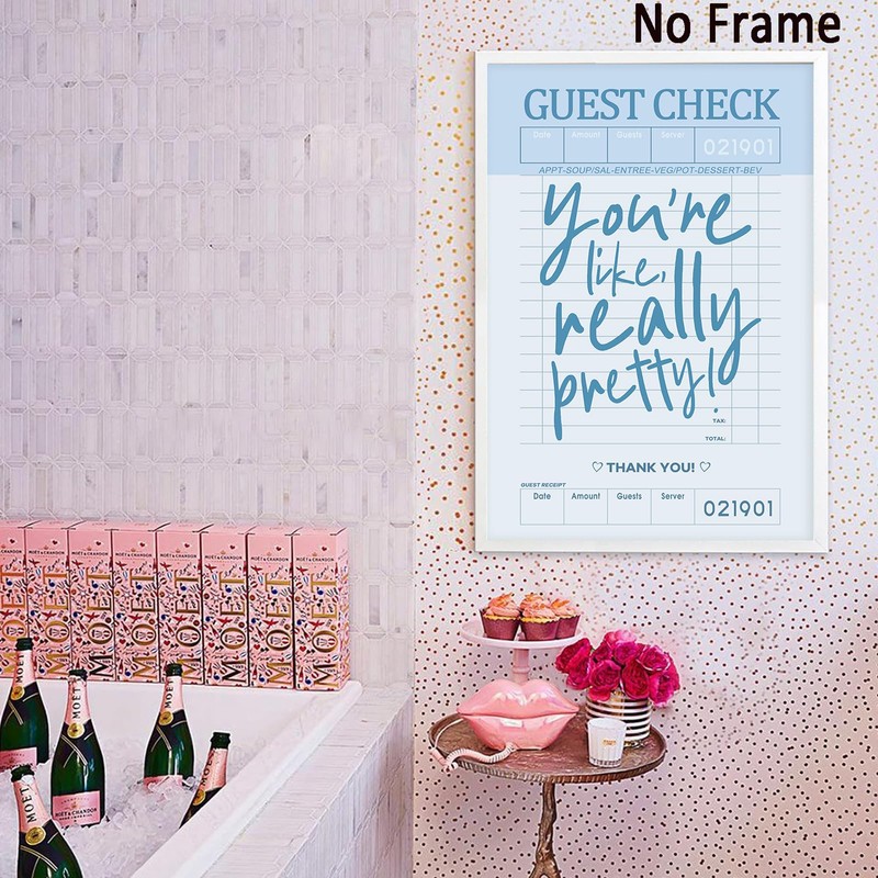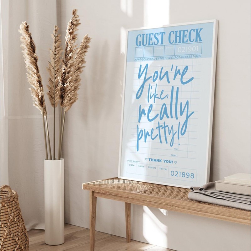 Blue Aesthetic Print Wall Art You're like Really Pretty Guest Check Poster Blue Trendy Wall Prints Guest Check Wall Art Funky Preppy Poster Funky Retro Prints Preppy Dorm Posters 16x24in No Frame