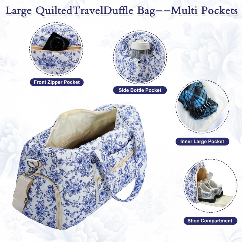 • Multi-purpose Coquette Bag: This blue quilted duffel bag can be used as a travel duffel bag, personal belongings travel bag, hospital mom bag, women's weekend bag, women's gym bag or laptop bag, which is versatile and easy to carry.