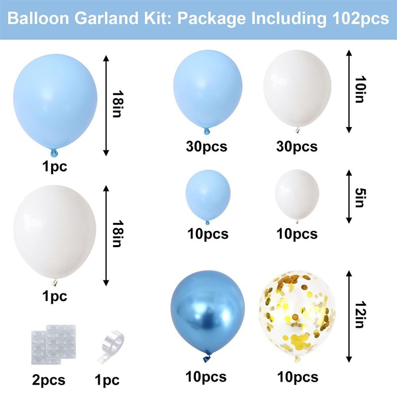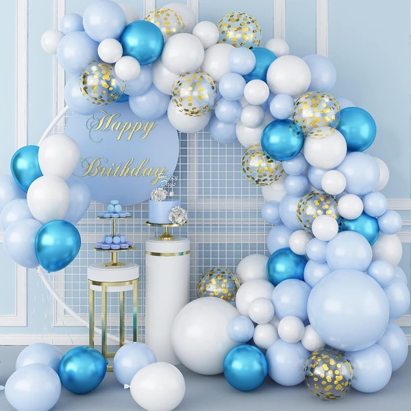 Blue Balloons Garland Arch Kit, Blue White and Gold Confetti Latex Balloons,Blue White Macaron Balloons for Birthday, Graduation, Baby Shower, Wedding, Anniversary Decoration