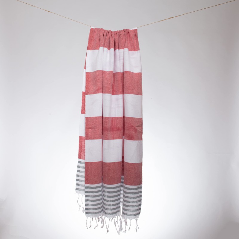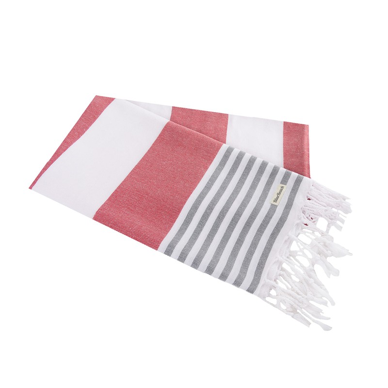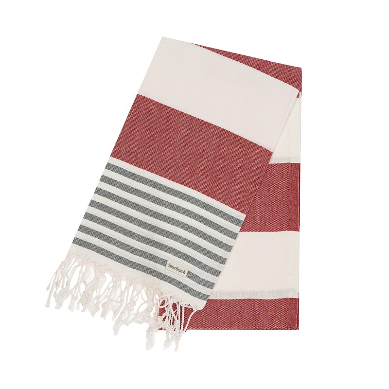 Blue Beach Turkish Towel - 100x180cm Large Turkish Hammam Peshtemal Towel - Super Absorbent, Quick Dry, Lightweight, Compact Towels for Swimming, Bath, Yoga Gym, Sauna and Travel (Red, 1)