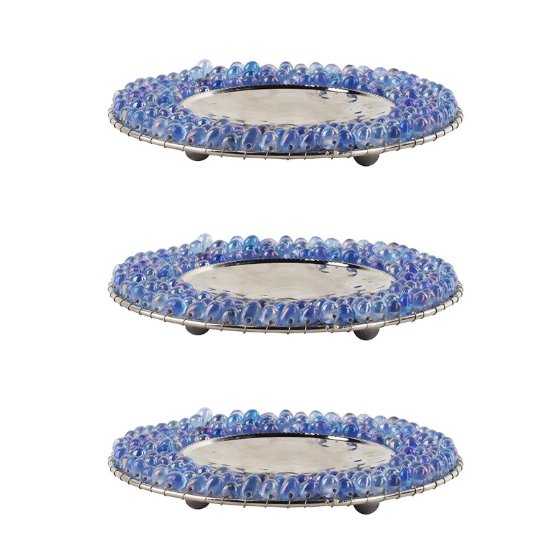 Blue Beaded Candle Stand - Set of 3