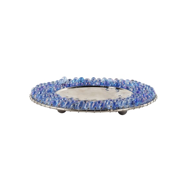 - This is a beautiful pillar candle holder stand with gorgeous blue irridescent beads.