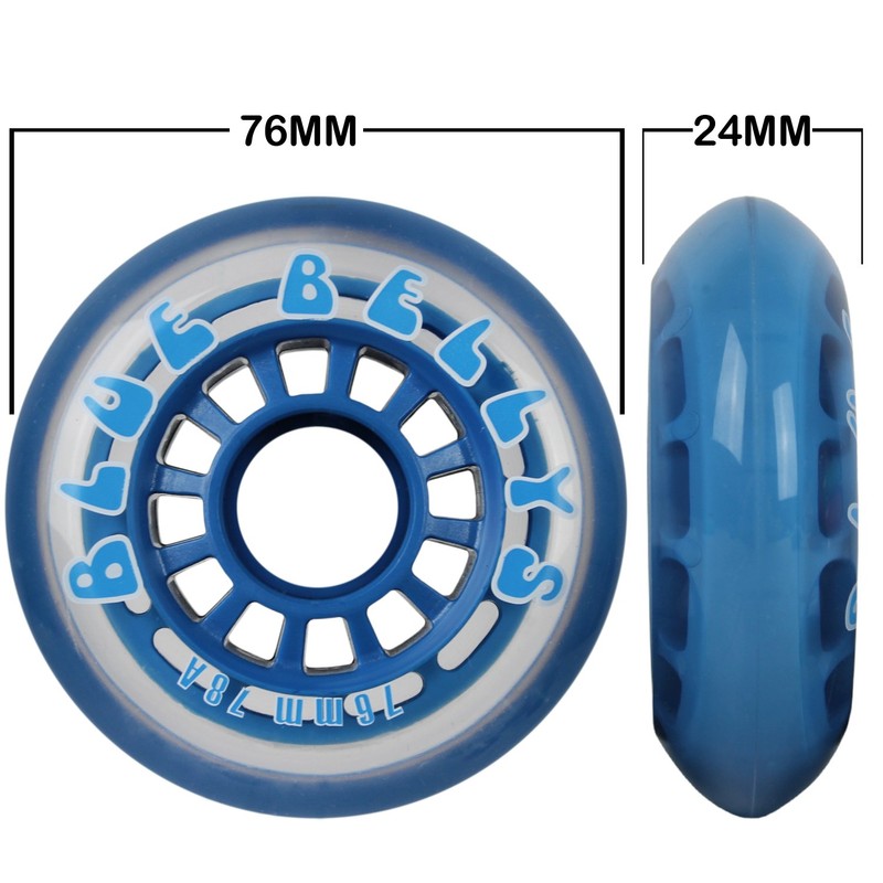 Blue Bellies 8 Inline Skate Wheels 76mm 78a, Clear/Blue