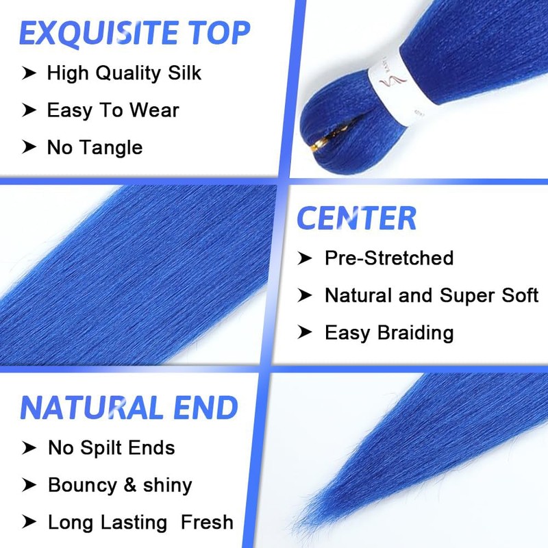 - 1.Pre Stretched Braiding Hair, 30 Inch Blue Braiding Hair Extensions,8Packs/Lot,Blue Color,105G One Pack.Soft And Natural Braiding Hair Extensions.