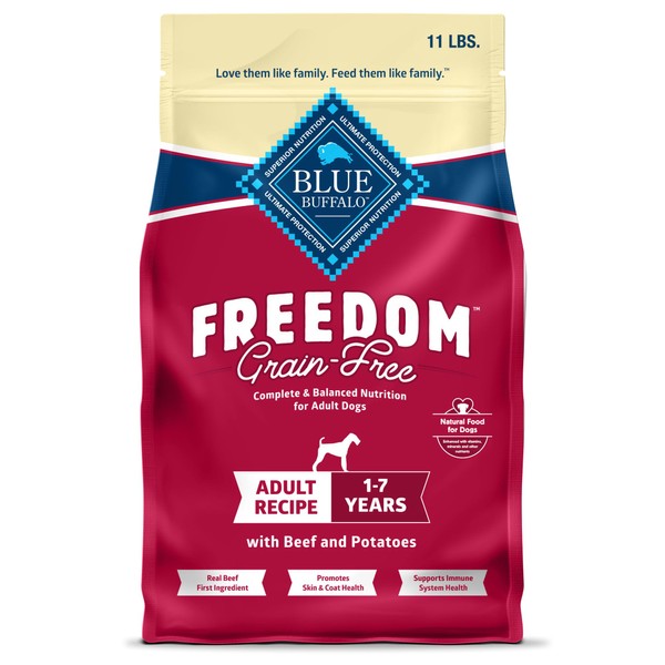 Blue Buffalo Freedom Grain-Free Dry Dog Food, Complete & Balanced Nutrition for Adult Dogs, Made in The USA with Natural Ingredients, Beef & Potatoes, 11-lb Bag