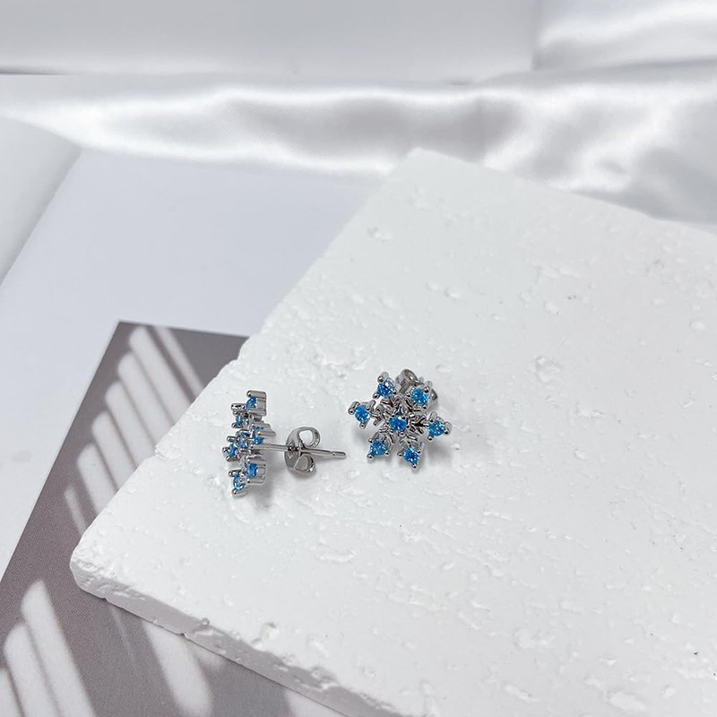 Blue Crystal Snowflake Wedding Stud Earring for Women Dainty Engagement Statement Sterling Silver Post Cute Elegant Cubic Zirconia Wedding Piercing Earrings Birthday Christmas Holiday Jewelry Gift Bff
