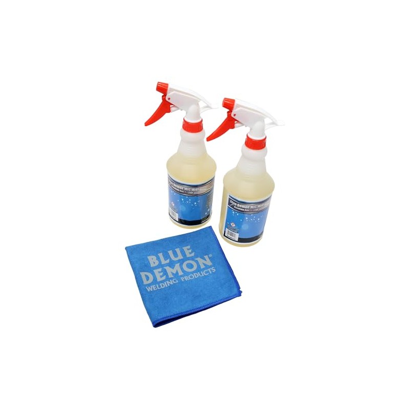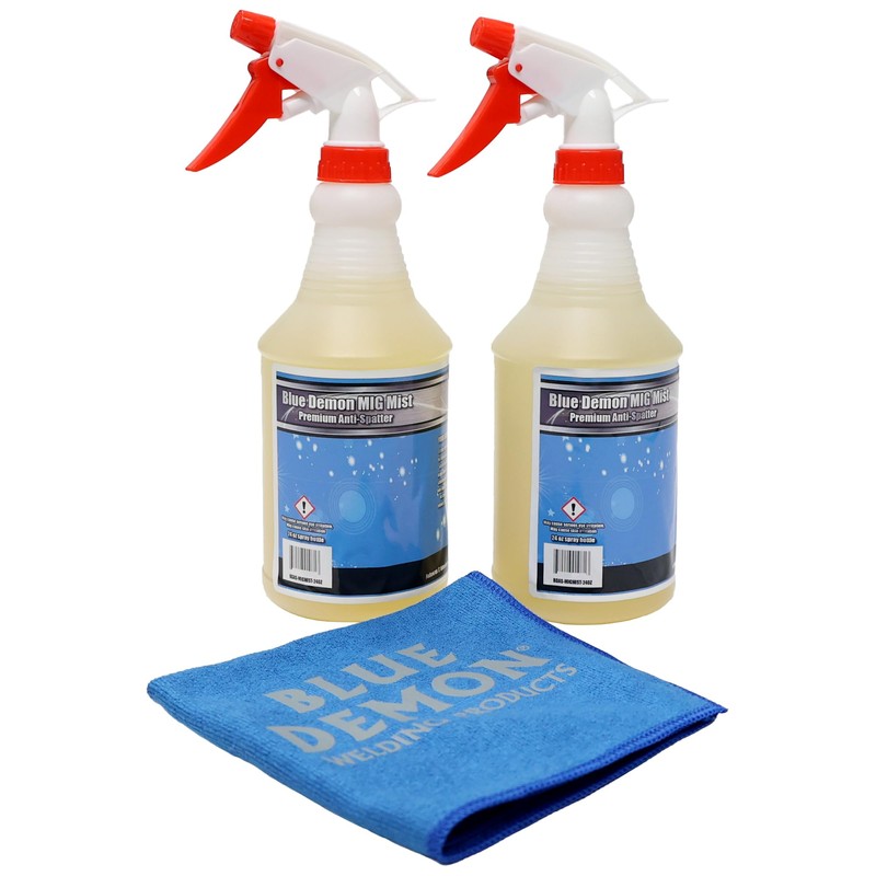 Blue Demon MIG MIST Premium Anti-Spatter, Methylene Chloride Free, Non-Flammable and Non-Hazardous, Removes Spatter and Oil, Combo Pack 1 EA Microfiber Towel and 2 EA 24 oz Spray Bottles