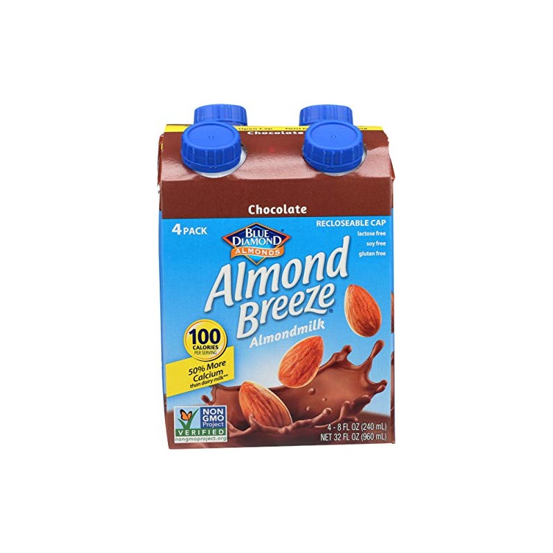 BLUE DIAMOND ALMOND BREEZE CHOCOLATE MILK SUBSTITUTE LACTOSE FREE CARTON TWIST CAP IN BOX 32 OZ
