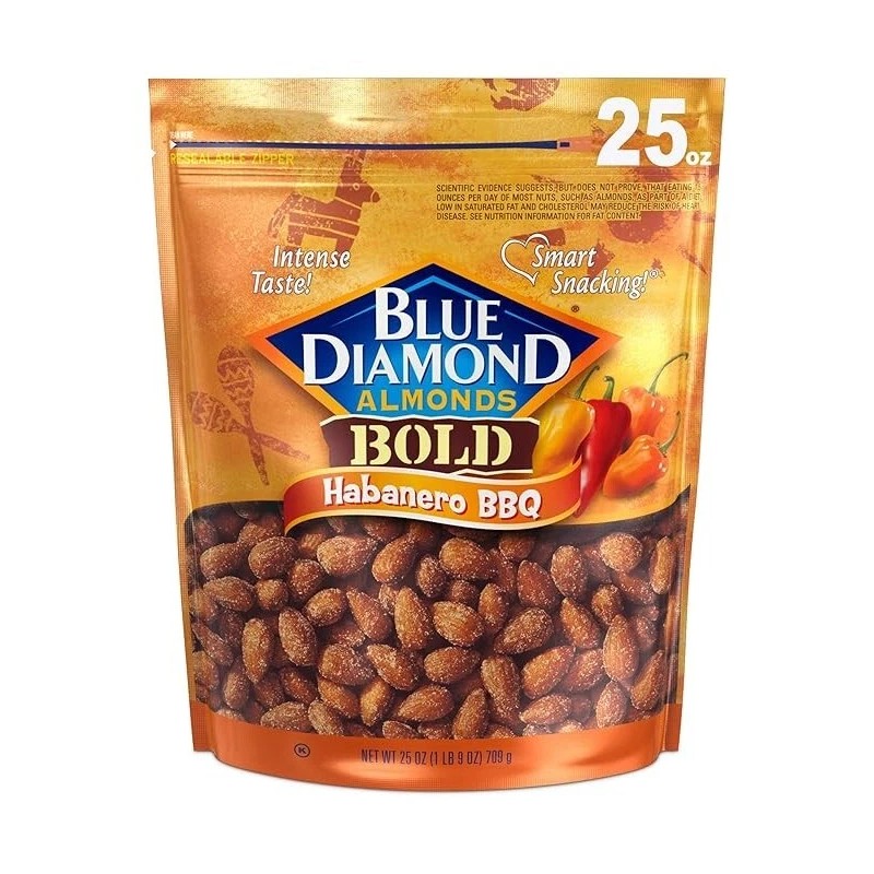 - Contains one 25-ounce bag of Blue Diamond habanero BBQ flavored snack almonds