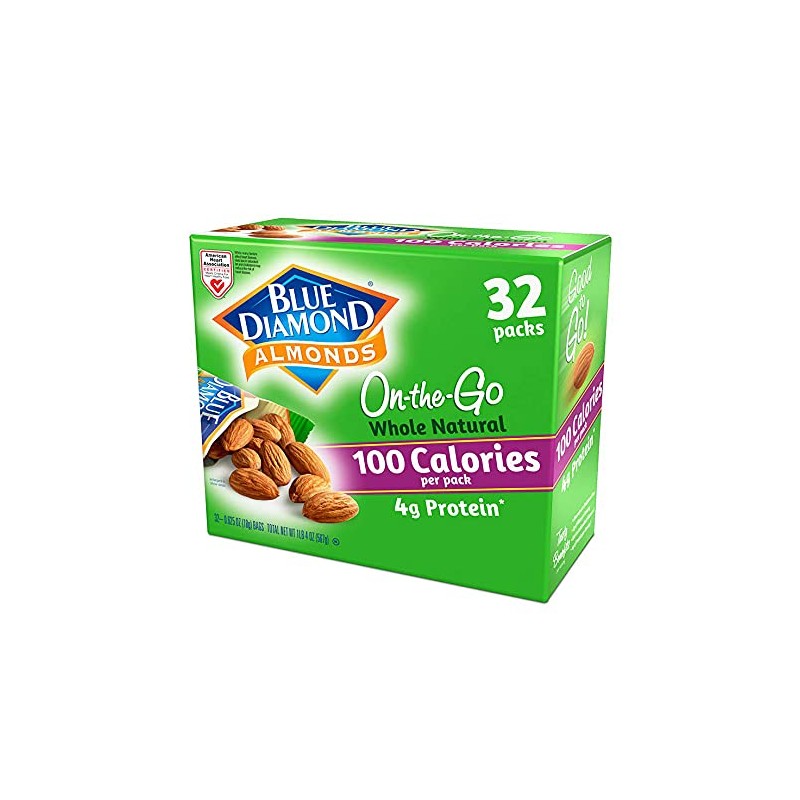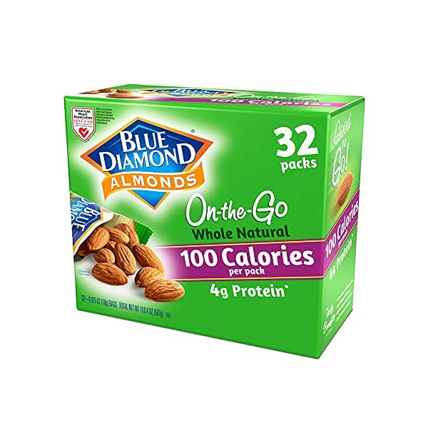 Blue Diamond Almonds Whole Natural Raw Almonds 100 Calorie On The Go Bags, 32 Count