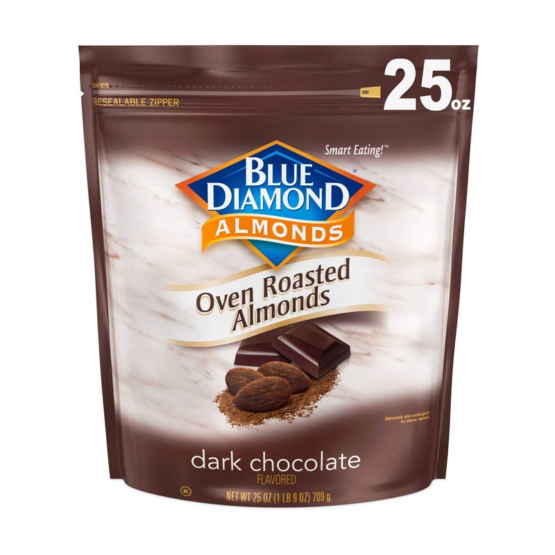 Blue Diamond Almonds Oven Roasted Dark Chocolate Flavored Snack Nuts, 25 Oz Resealable Bag (Pack of 1)