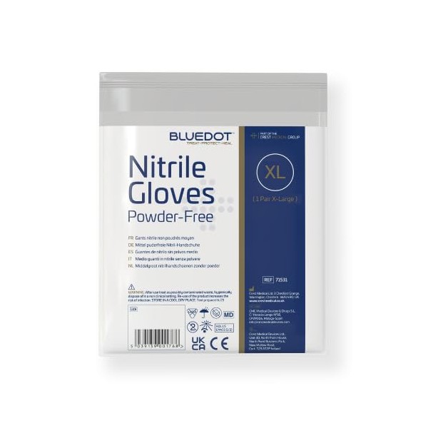 Blue Dot Nitrile Gloves (1 Pair) – Extra Large, Non-Sterile, Powder-Free for Medical & General Use
