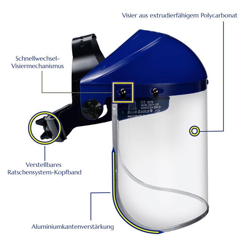 Blue Eagle Full Face Impact Resistant Safety Faceshield (B1BL+FC48) | Clear | Extrusion-Grade Polycarbonate Visor | 1 Set + Replacement Visor