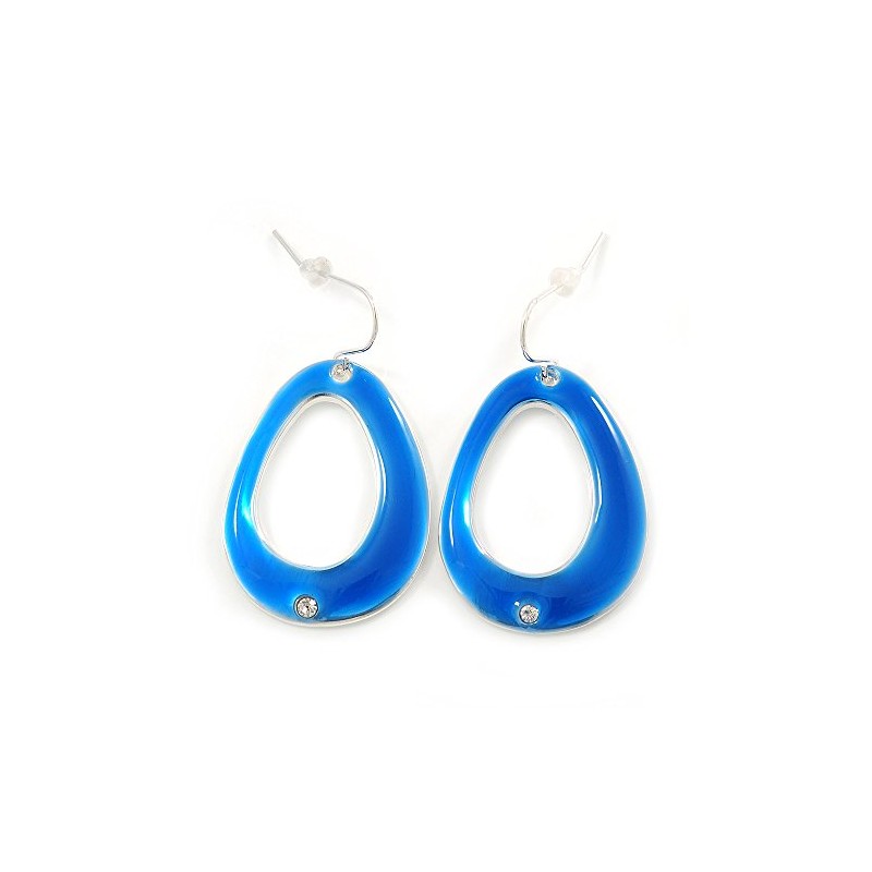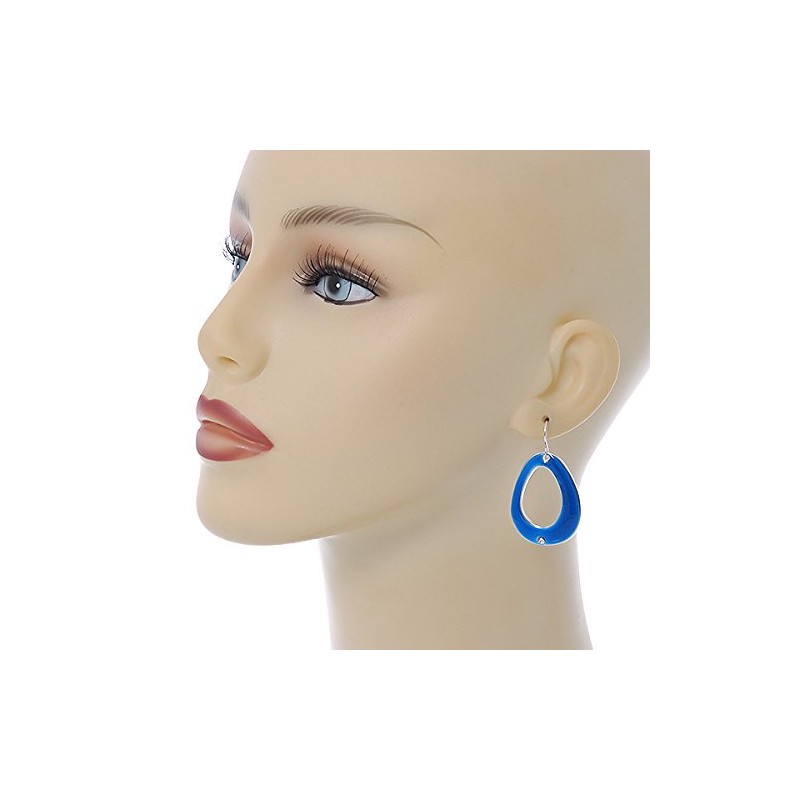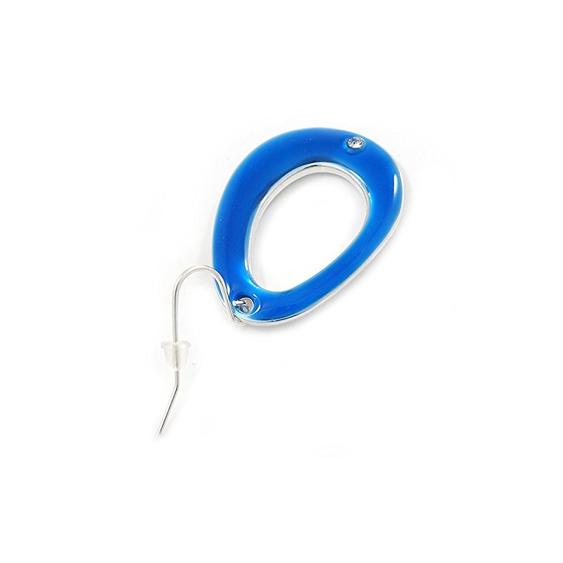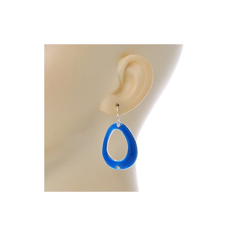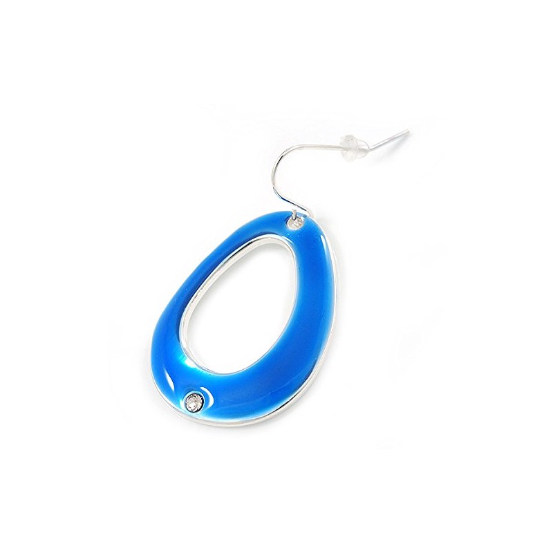 Blue Enamel Cut Out Oval Drop Earrings In Silver Tone - 40mm L