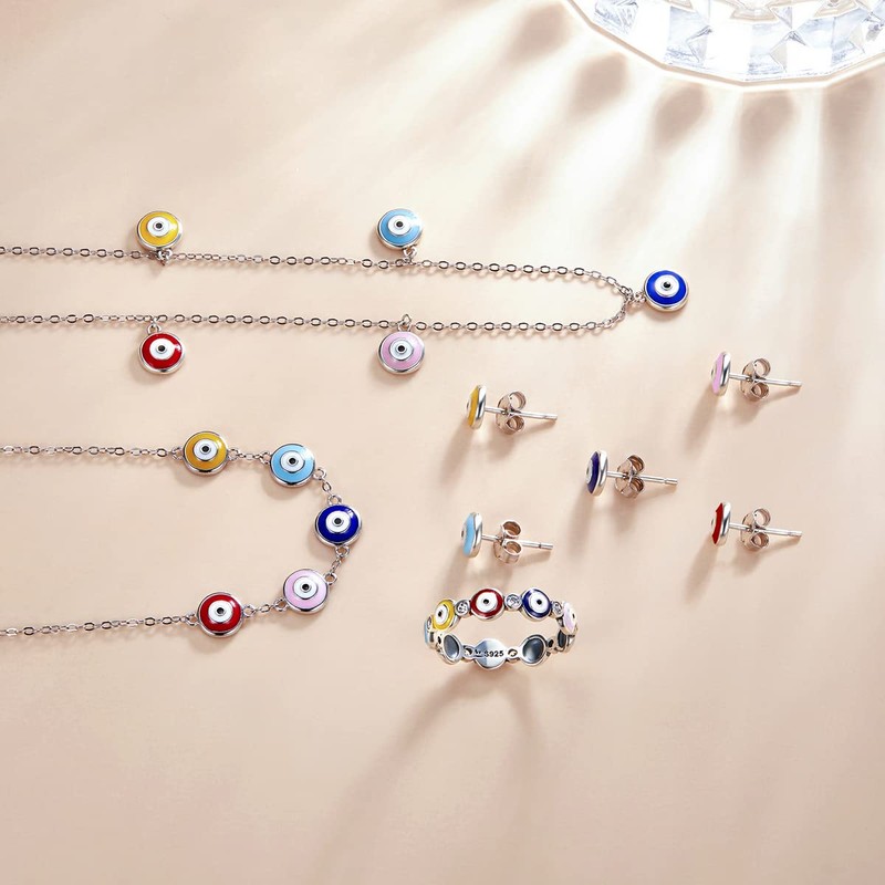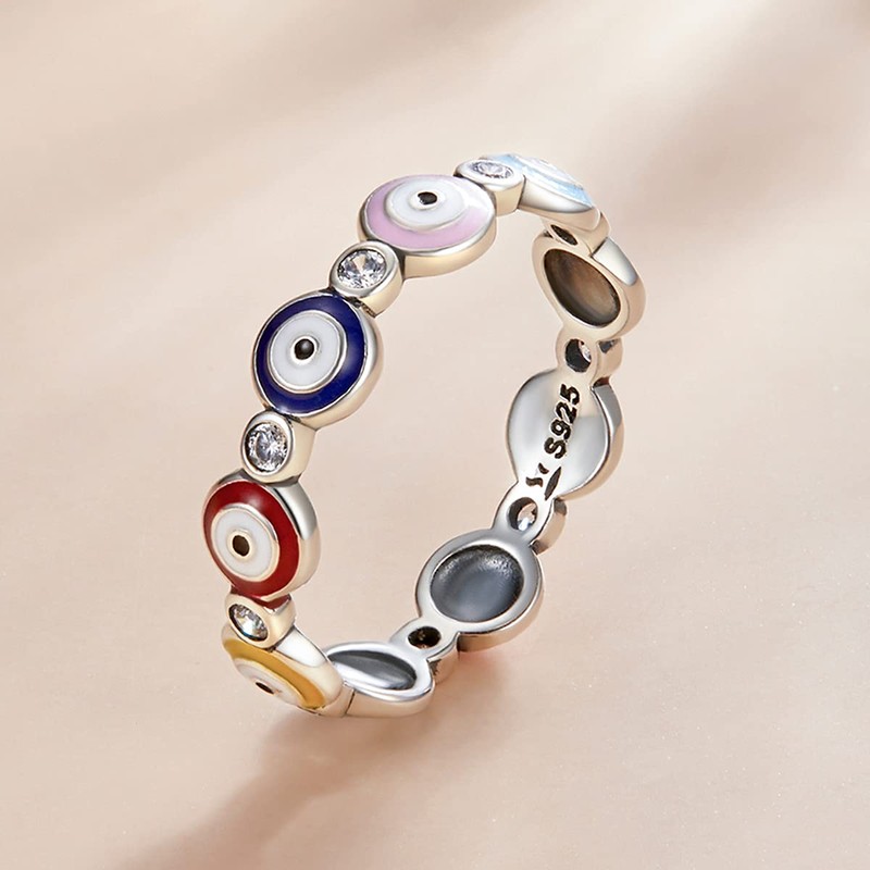 - 💕Premium & Safe💕This colorful evil eye rings are made of 925 sterling silver. Colored evil eyes enamel and inlaid with white cubic zircons between eyes, easy to maintain and keep it looking new. Solid 925 sterling silver material is highly resistant to rust, corrosion and discoloration, great for sensitive skin!