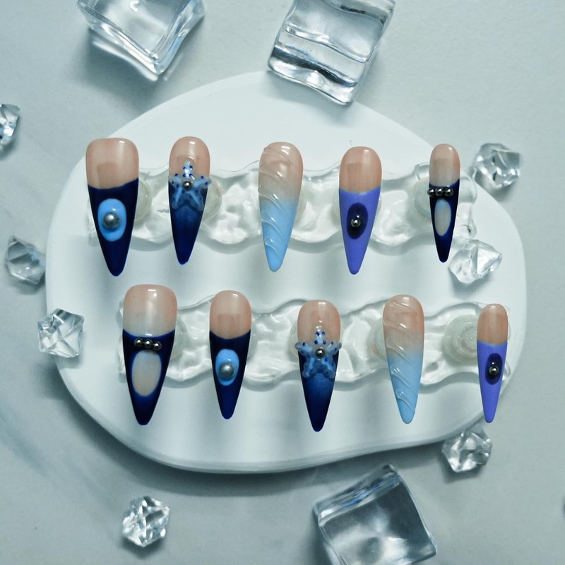 - Salon-Perfect Gel Hand-Painted 3D Designs: Achieve luxury salon nails in 5 minutes with these Tesytto hand-painted long stiletto press-ons. Features gel-polished ocean starfish & shell pearl design - not ink prints - for vibrant, non-fading nail art. Save time and money