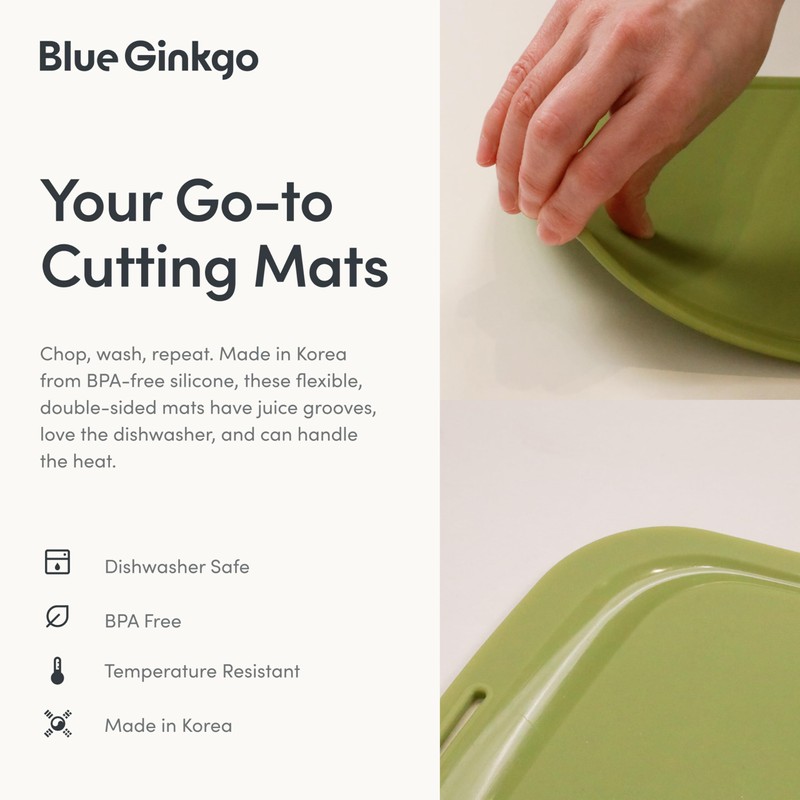 Blue Ginkgo Silicone Cutting Boards – Set of 3 (Small, Medium, Large) – Double-Sided, Thick, Flexible, Non-Slip, BPA Free – Juice Grooves, Dishwasher Safe (Made in Korea, Green)
