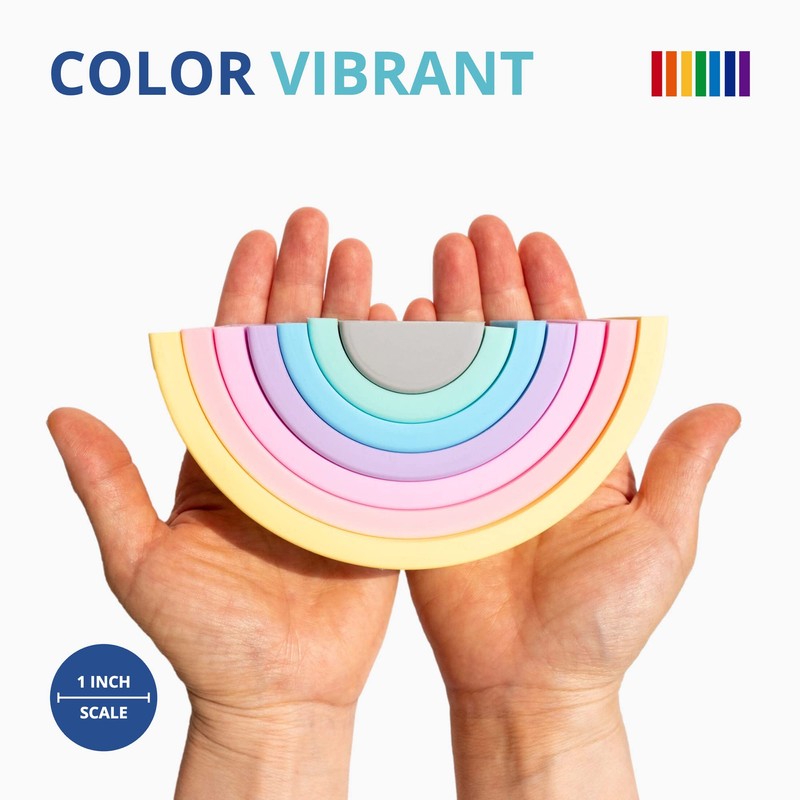 - Silicone Rainbow Toy: A modern plastic-free alternative to the classic wooden rainbow stacking toy. Made from food grade silicone, our silicone rainbow stacker is durable, soft, flexible, and will never crack or splinter