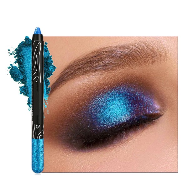 Blue Glitter Eyeshadow Pencil, Shimmering Bright Blue Eye Shadow Stick, Creamy Metallic Glitter Eyeliner Eyeshadows, Smooth Highly Pigmented Hot Colour for Eye Makeup