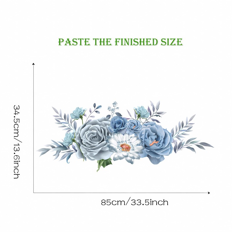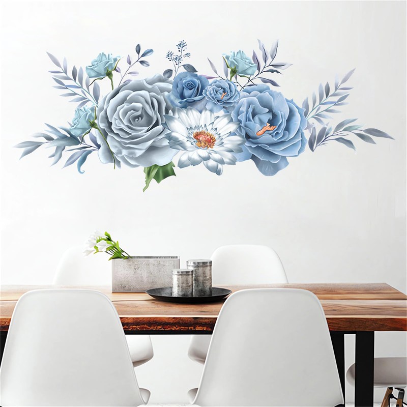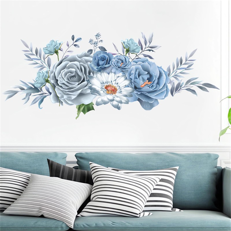 Blue-Gray Peony Flowers Wall Stickers, sacinora Floral Art Plants Wall Decals Removable Vinyl Peel and Stick for Living Room Bedroom Children's Room Kitchen Sofa TV Background Decorations