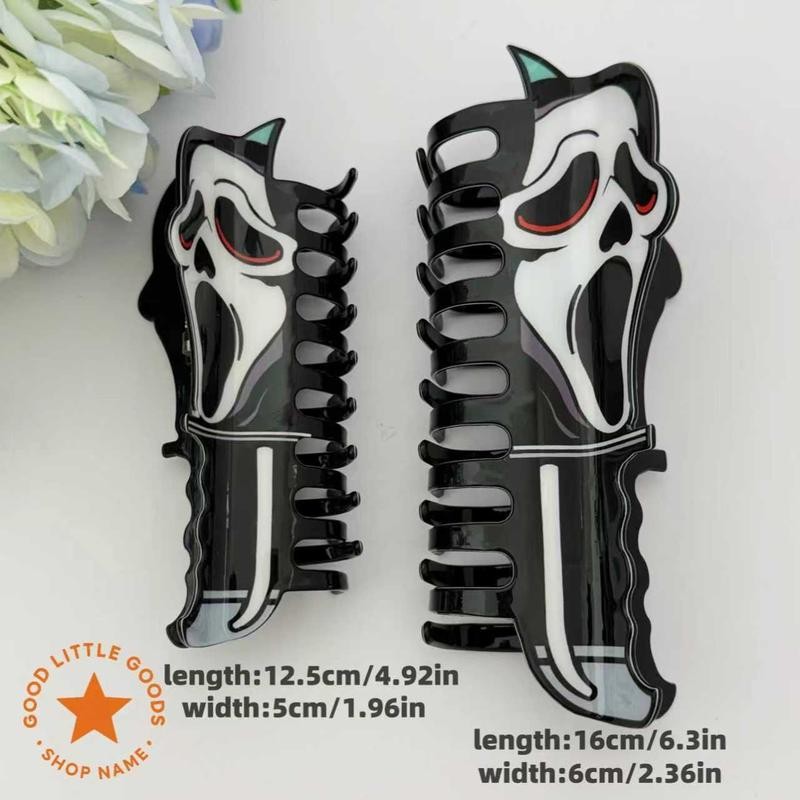 Blue-Haired Girl Double-Sided Claw Hair Clips, Durable Plastic for Women & Girls, FallFreshness, Casual Design, 4 Inches, Unisex, Premium Quality:_Mega-Gh0stMask + Bl4de