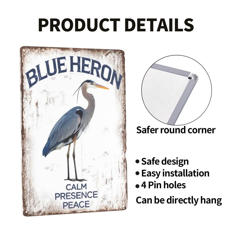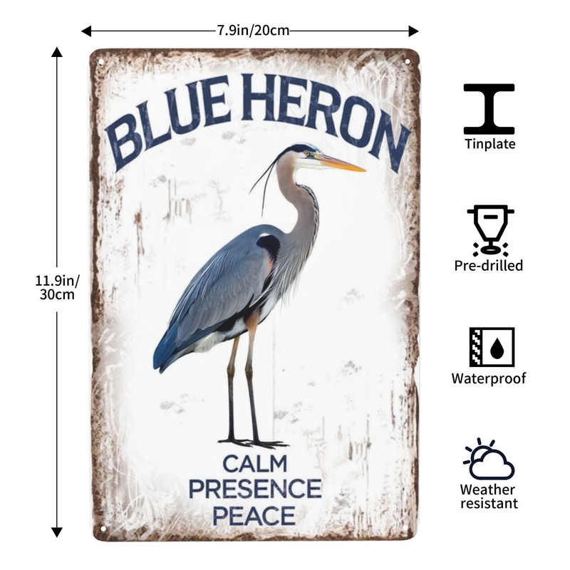 Blue Heron Calm Presence Peace Retro Theme Inspirational Quotes Wall Decor Unique Designs 8x12 Inches