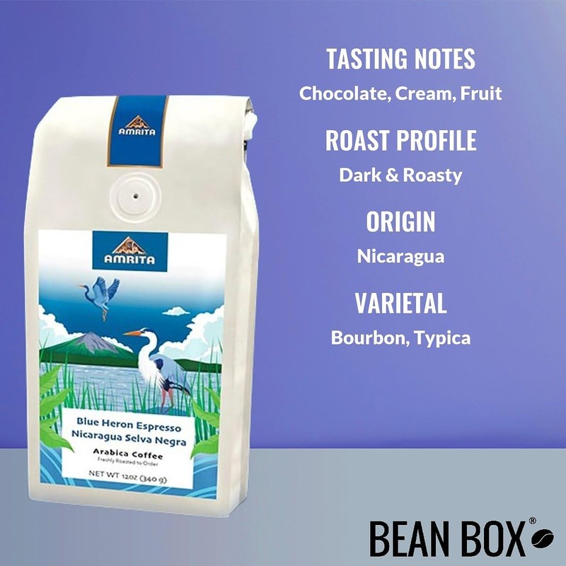 Blue Heron Espresso Nicaragua Selva Negra - Dark - Roasted by Amrita Certified Pure - Whole Bean Coffee - 2 Pound Bag