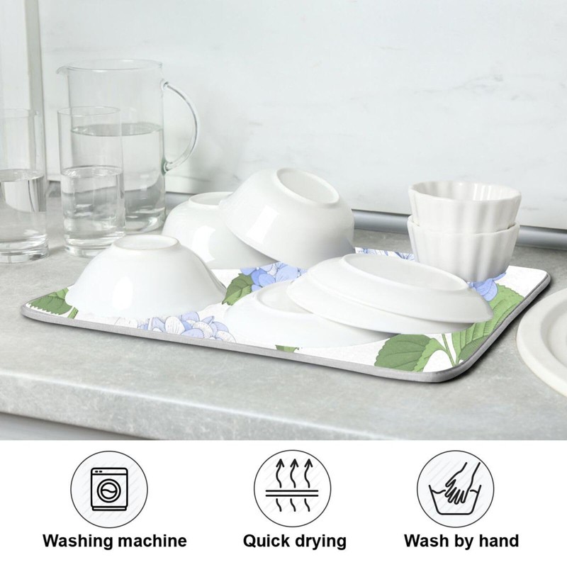 Blue Hydrangea Flowers Dish Drying Mat for Kitchen Counter Large Super Absorbent Drying Mat for Countertop Protector Dishes Pad Kitchen Drying Matt 18x24 inch