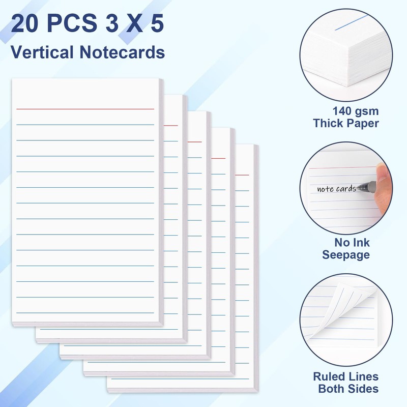 - 1. Leather Index Card Holder: The 3x5 note card holder is made of PU leather, which is durable, waterproof, comfortable to the touch. The pocket notepad size is 8.07x5.53 inches, small and portable, and can be easily put into pockets. The notepad holder set also contains 20 pcs 3x5-inch red and blue lined index cards, The line card is thick and will not penetrate the ink, ensuring the clarity and long-term preservation of the recorded content.
