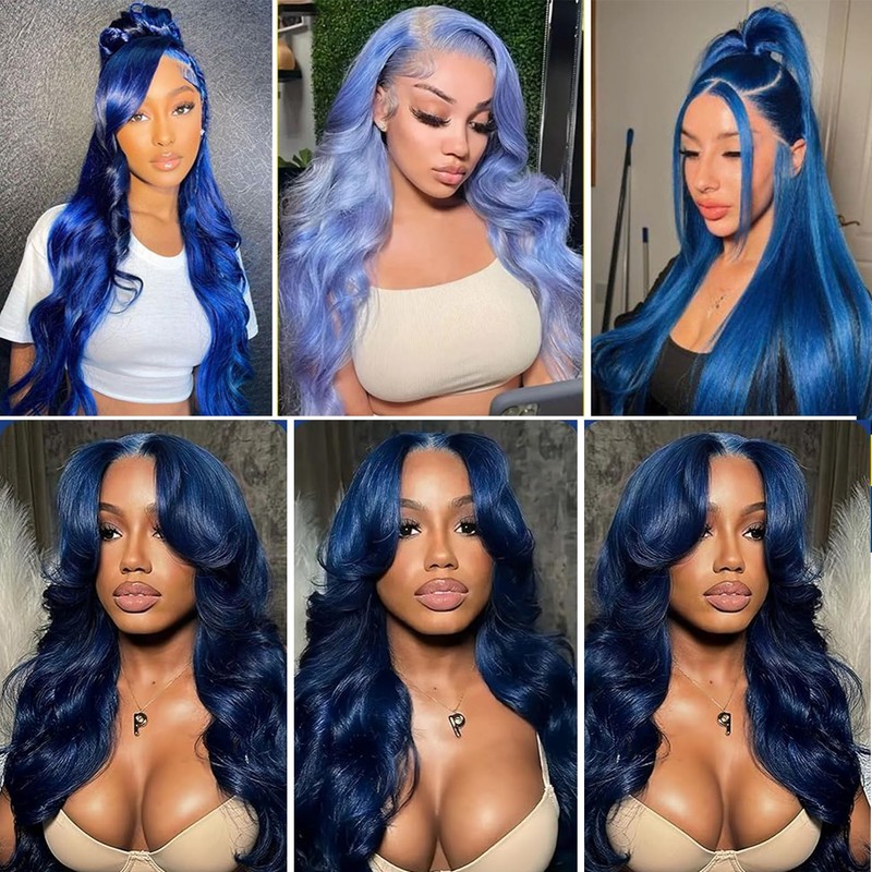 - Dark Blue 13x4 Hd Lace Front Wig Quality: Blue13x4 Glueless Straight Hd Lace Front Wig Pre Plucked With Baby Hair,Natural Hairline,Bleached Knot,Full And Thick,No Split,No Smell,To Length Wig.Can Make Ponytails,Buns,Dyed,Straight, Curled And Styled As You Like