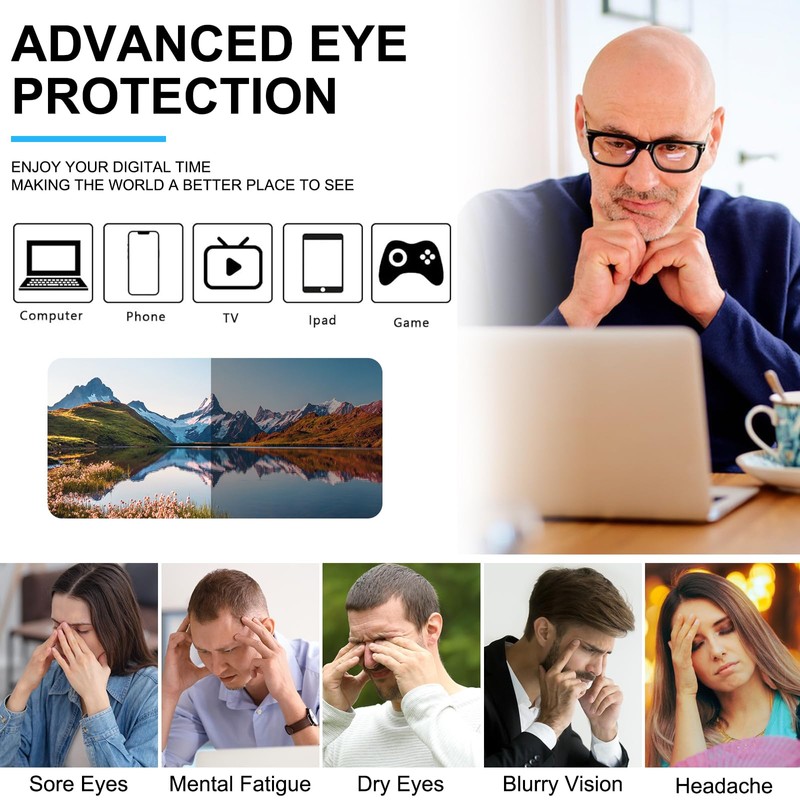 - Effective Blue Light Blocking: Blue light glasses is engineered to effectively filter out harmful blue light emitted by TV, computer and mobile screens. By reducing eye fatigue and potential damage, glasses for computer screen keeps your eyes comfortable when using electronic devices for long periods of time, improving work efficiency and overall eye health.