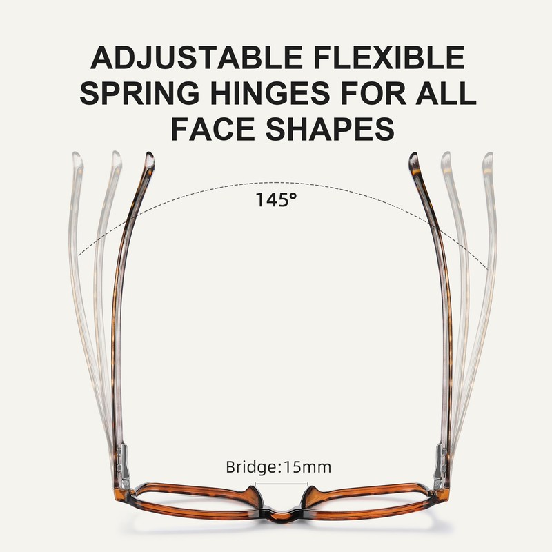 - FRAME DESIGN: This blue light glasses include spring hinges and the metal pin is built into the temple, allowing the temple to be flexibly adjusted to adapt to different head shapes, making it more comfortable and stable to wear. Men Women blue light glasses come in a variety of colors, and their classic fashion sense can showcase your beauty