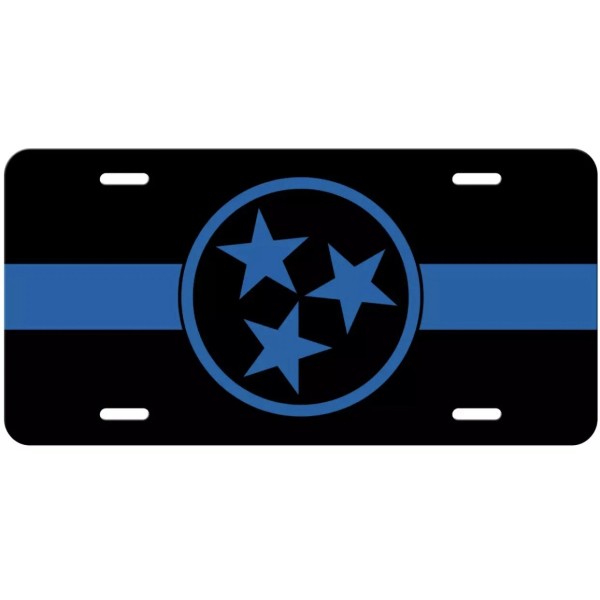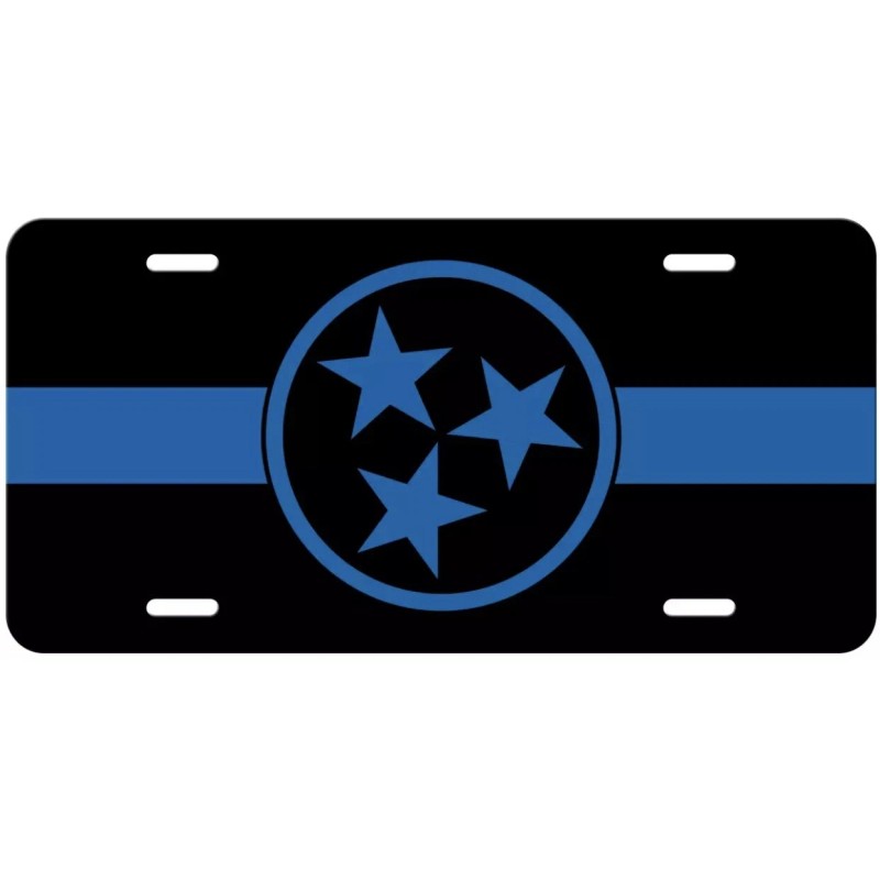 Blue Line Tennessee Police Tri Star Aluminium License Plate Highest Quality.