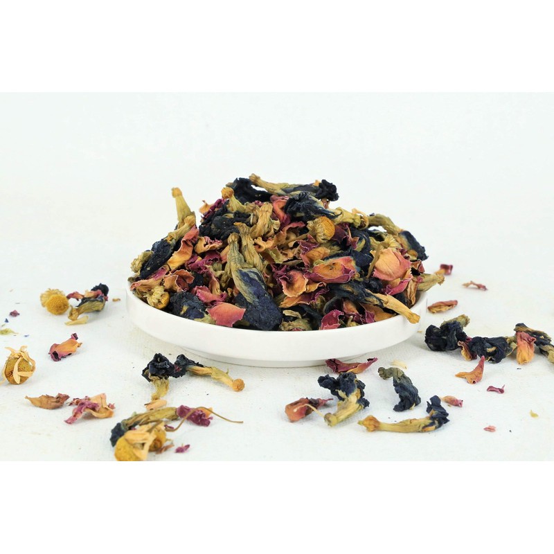 - CALMING DIGESTIVE This sensual floral combination will fascinate you with its magic Naturally blue tea in coulor and add lemon to change to purple Boosting the lustre of your hair, skin and eyes the natural blue colour demonstrates how super high this tea is in anti-oxidants Enjoy the after glow