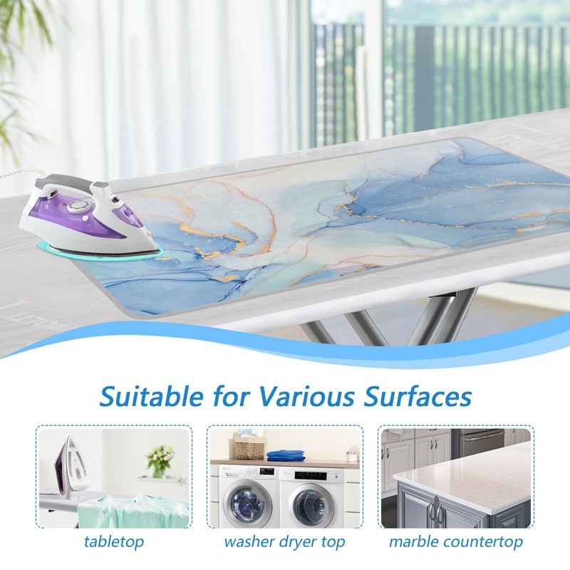 Blue Marble Pattern Homes Ironing Mat/Pad (Large 47 x 28 inch) with 3mm Padding & Silicone Iron Rest for Steam Pressing on Tabletop or Bed - Heat Resistant, Portable, Quilting & Travel Blanket