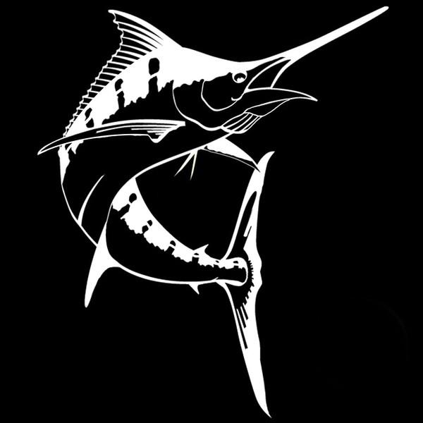 Blue Marlin Decal, Marlin Sticker, World Record Billfish Bumper Sticker (H 10 by L 8 Inches, White)
