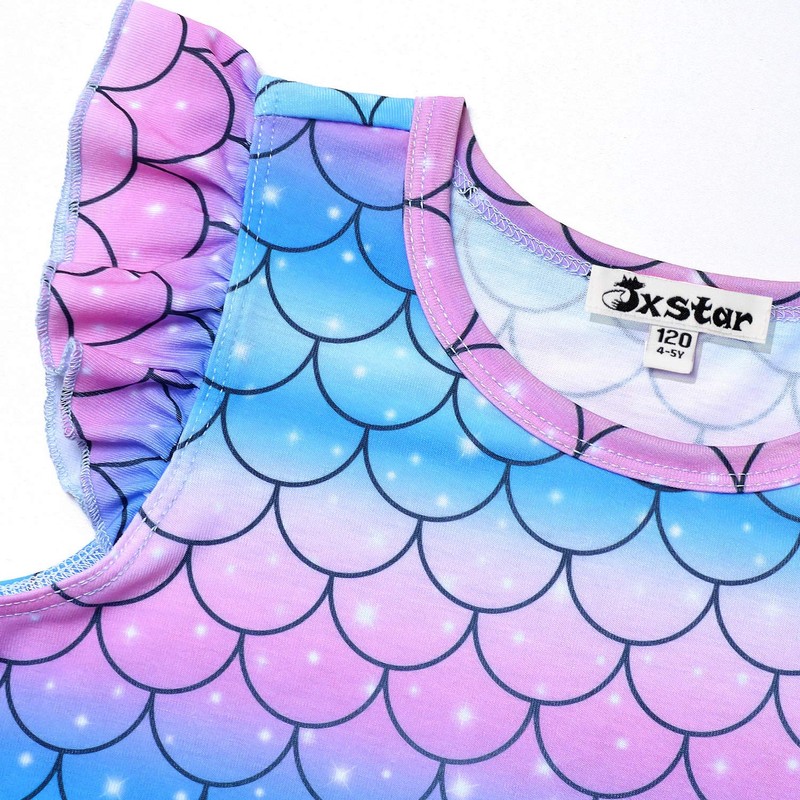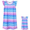 Blue Mermaid Nightgowns Matching Girls&Dolls Flutter Sleeve Pajamas Pjs,Size 10 11