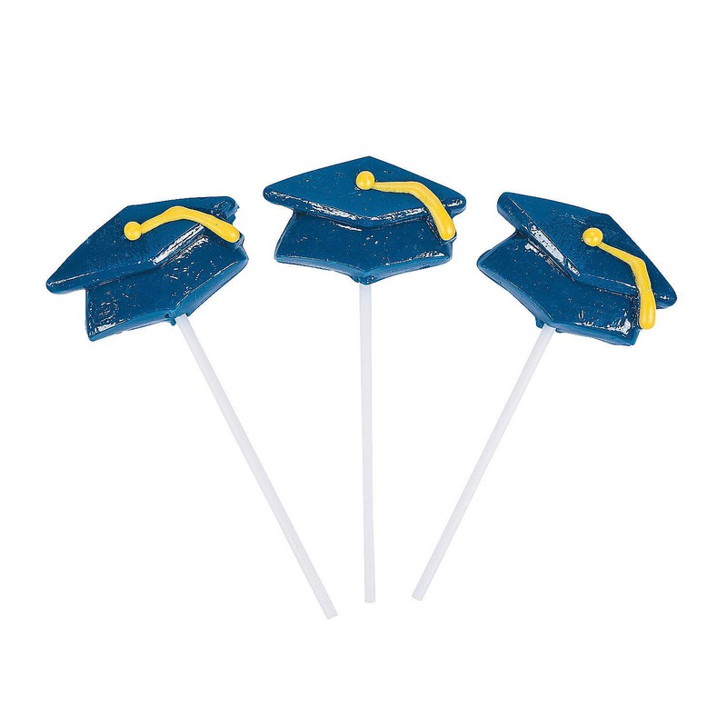 - Add these fun suckers to the centerpieces or place settings at your graduation party for an added treat. Mortarboard Graduation Suckers are available in a variety of colors to coordinate with school colors.