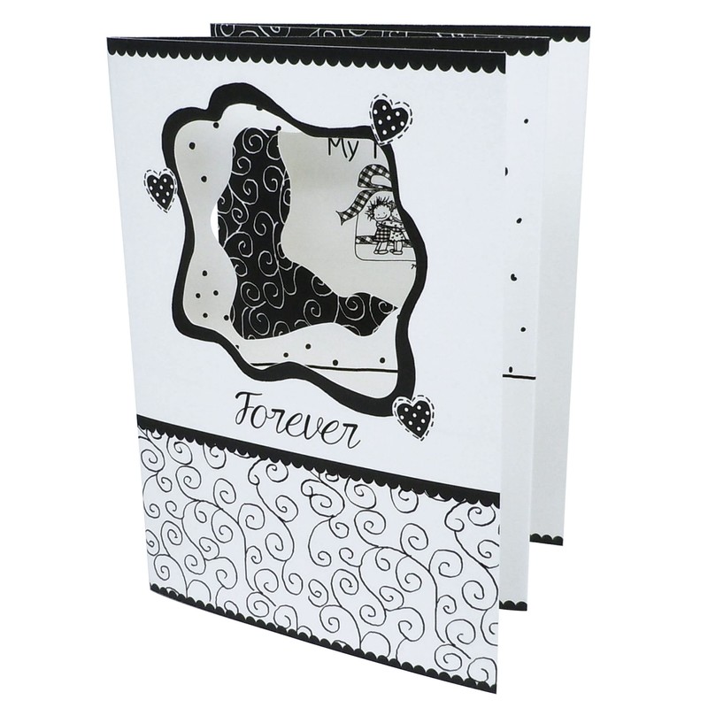 - Four-panel accordion fold greeting card features eye-catching black and white illustrations and layered cut-outs and measures 6.9 x 4.9 inches