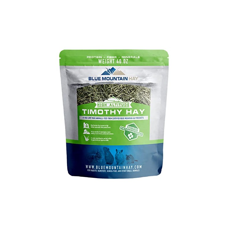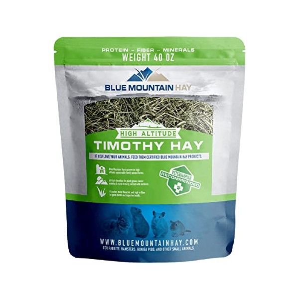 Blue Mountain Hay | 40 oz. Fresh Timothy Hay | Available in 15 oz. & 40 oz. Pouches | Nutritious, Delicious Timothy Hay for Rabbits, Guinea Pigs, Gerbils, and Other Small Pets