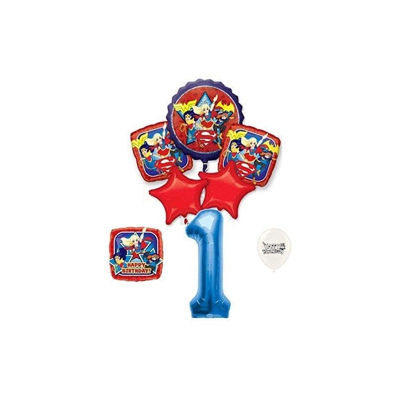 - 1 - 28" DC Superhero Girls Mylar, 1 - Large Blue Number 1 Foil Balloon