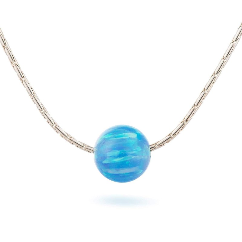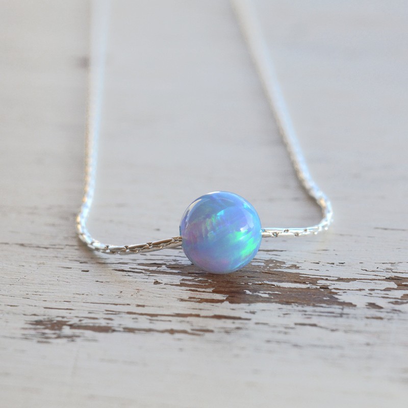 Blue Opal Ball Necklace sterling Silver delicate Jewelry 16" length + extender