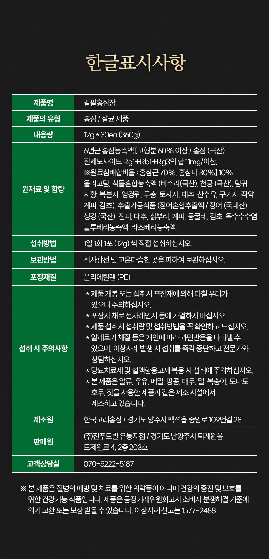 Blue Palpal Red Ginseng 12g X 30 Po 3 Box / 이푸른 팔팔 홍삼장 12g x 30포 3박스