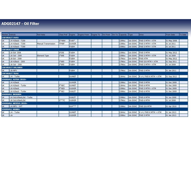 Blue Print 1 x Oil Filter with Sealing Ring - ADG02147