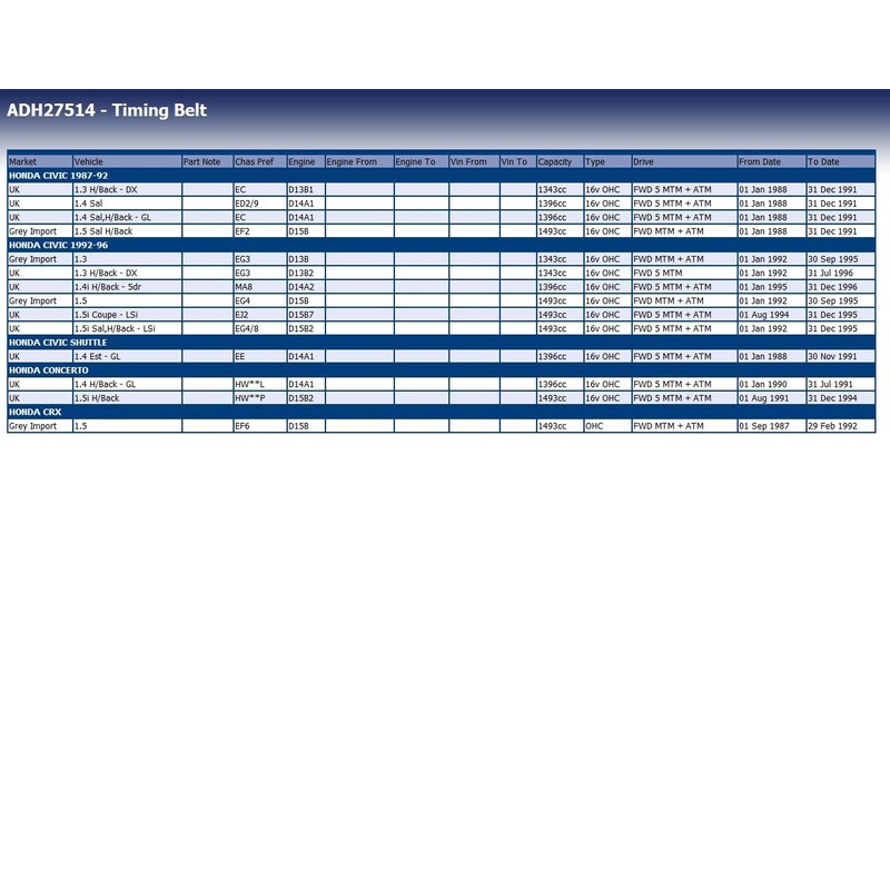 • OE numbers (for comparison purposes only): Honda 14400-P1J-E01; OEM numbers (for comparison purposes only): Bosch 1 987 949 134, Dayco 94158, Continental / Contitech CT1070, Bosch 1 987 949 577, GATES 5232XS, Bosch 1 987 AE1 016
