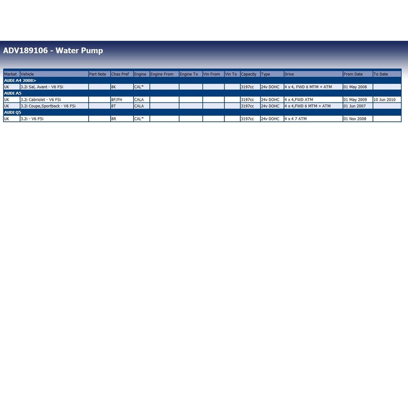 - u.a. geeignet für: Audi: A6 (4F), A4 quattro (8K), A5 quattro (8T), A6 quattro (4F), Q5 quattro (8R), A5 (8T), A5 quattro (8F), A5 (8F), A4 (8K), A8 (4E)