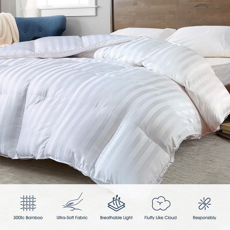 - 【Product Demension】Sizes are availabe in Twin:68x90in /Full-Queen:90x90in /King:108x90in. 100% Cotton Damask Stripe Cover,14-Inch baffled box construction, 1-inch gusset.Fill Material:100% Duraloft polyester.