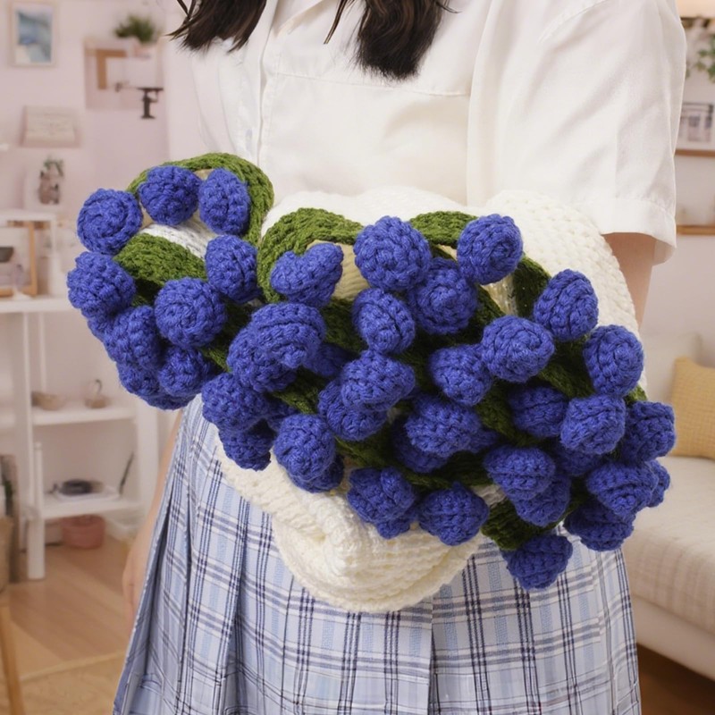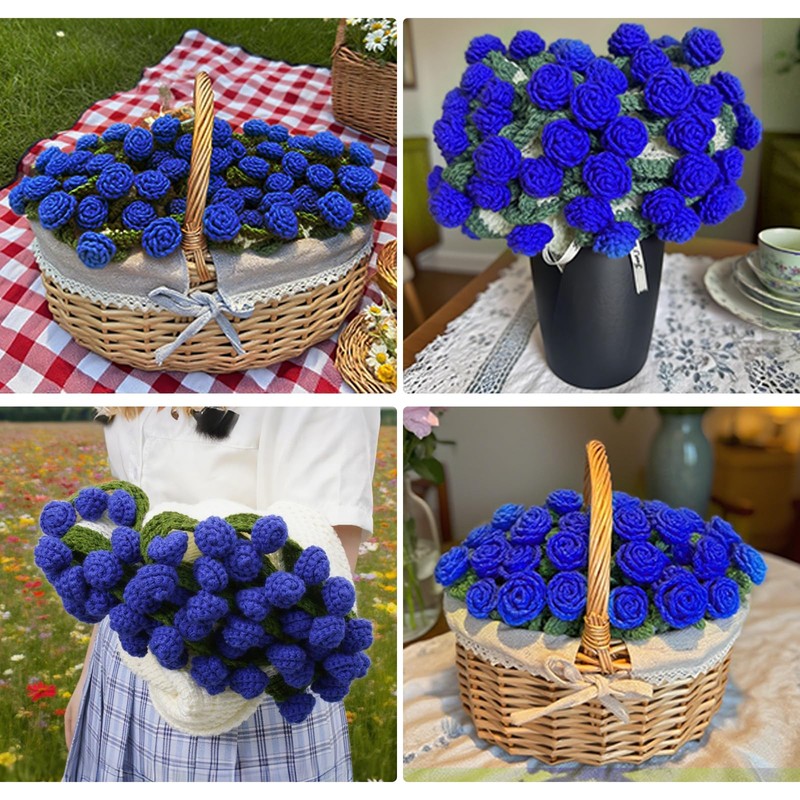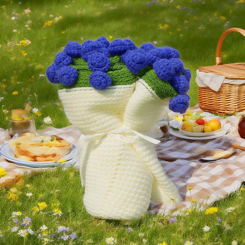 Blue Rose Blanket Floral Throw 3D Handmade DIY Crochet Bouquet Blanket 51in