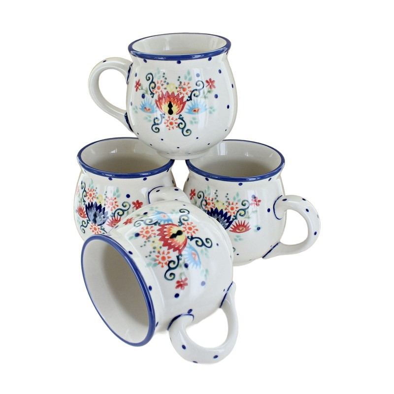 Blue Rose Polish Pottery - Blue Desert Flower Bubble Mug Set - 4 10 oz Mugs - Uniquely Shaped Mug Set for Entertaining Guests