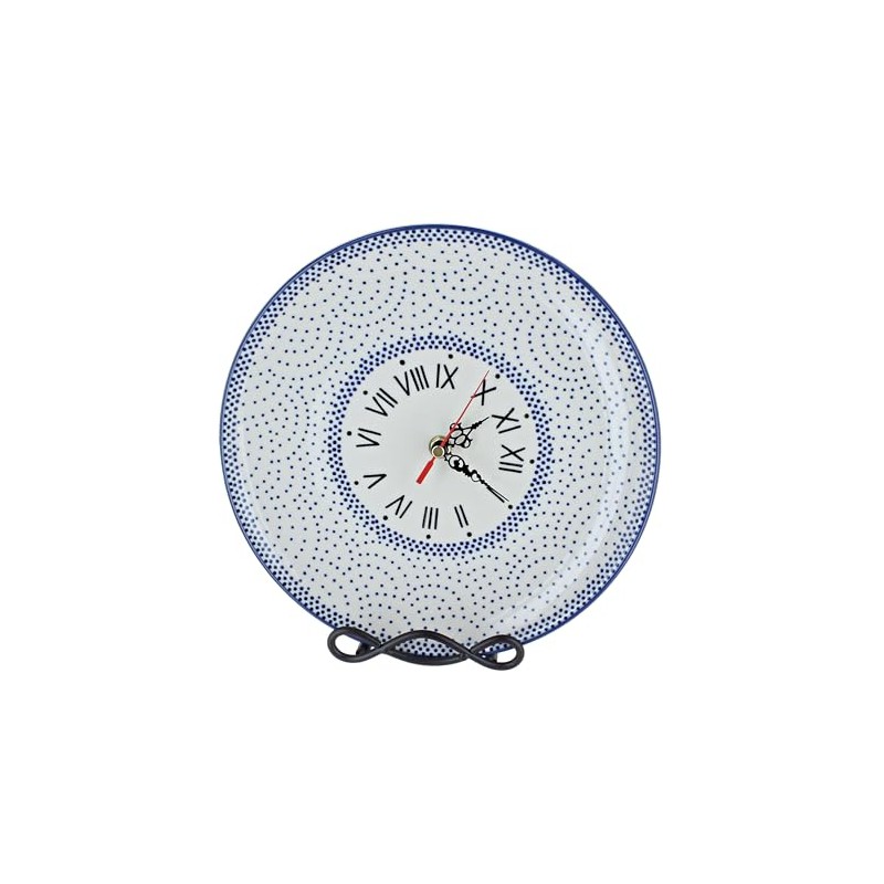 - Charming hand painted plate clocks function for every design and space. Scalloped minute and hour hand have a soft ticking for a vintage feel. 10-inch diameter takes AA batteries.